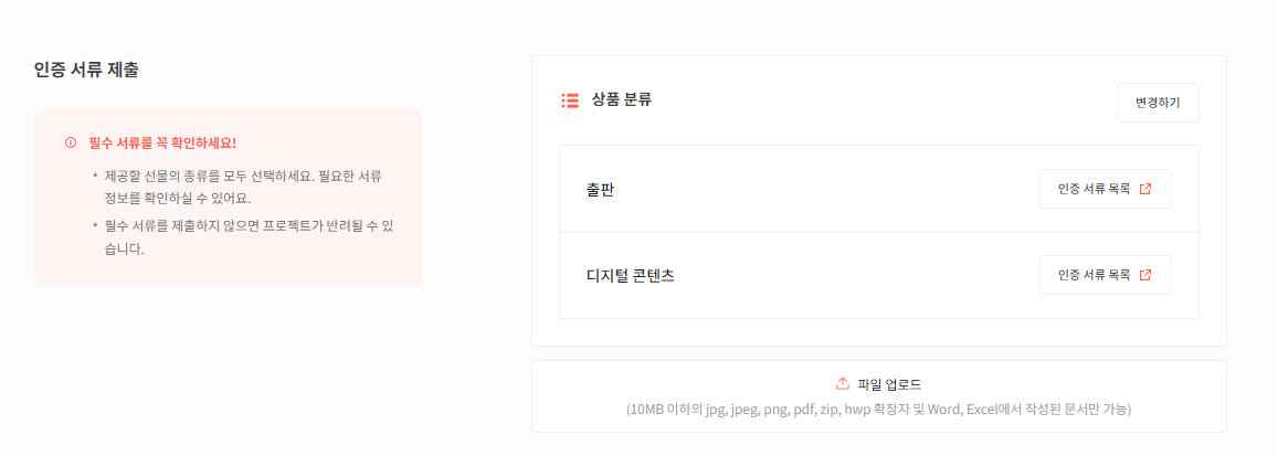 그런데 인증서류가 필요 없다면 비워두면 된다 해서 비워두고 제출했는데 통과됐다.