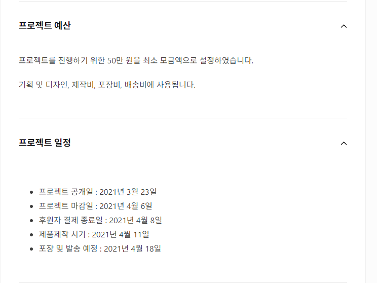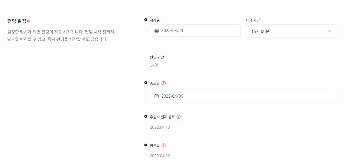 심사에서 수정요청 사항이 딱 하나 있었는데 여기서 펀딩 종료후 일자를 정확한 날짜로 표기해달라해서 변경했다.