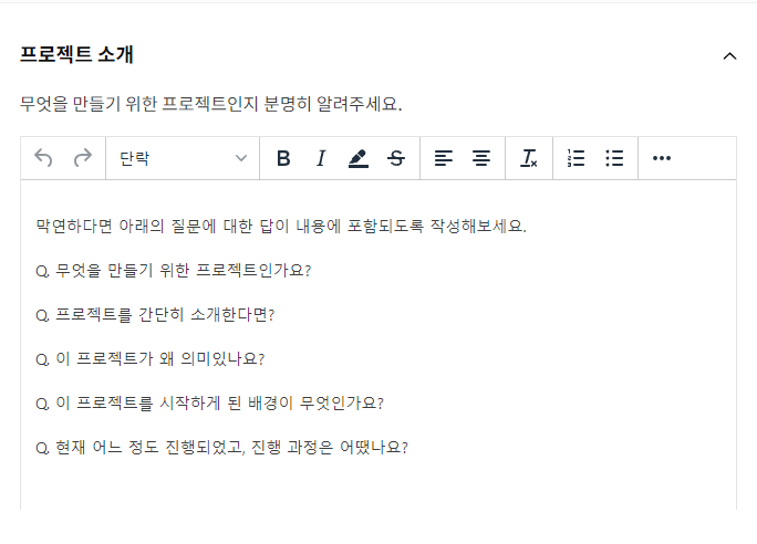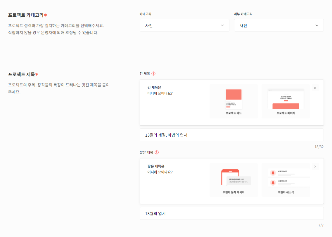 1) 카테고리 2) 제목 3) 프로젝트 요약 4) 프로젝트 대표 이미지
