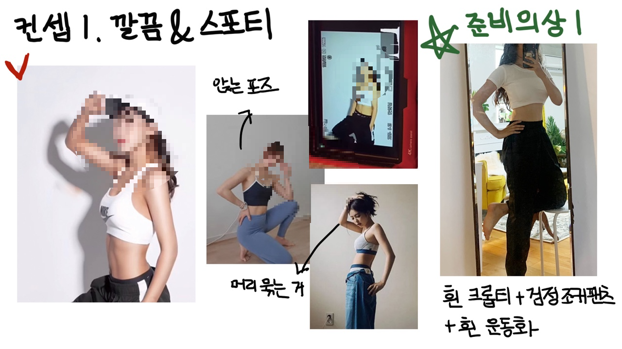 컨셉 1. 소포티&캐주얼: 검정 조커팬츠 + 흰 크롭티